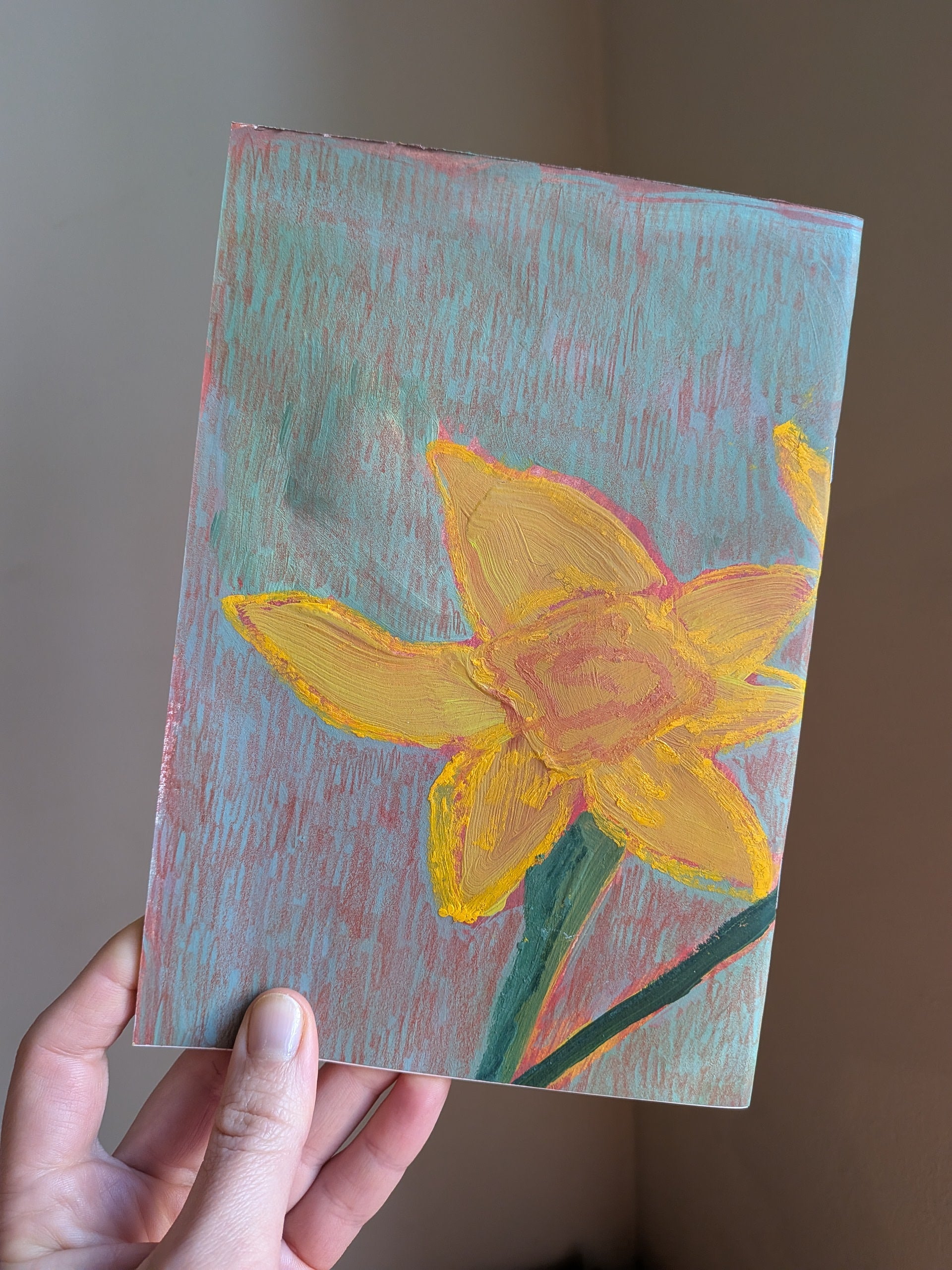 Unique notebook, handmade with handpainted cover made out of one of my old sketches